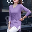 İlkbahar Ve Sonbahar Kadın Bluz Günlük V Yaka İnce İnce Orta Uzunlukta Dip Gömlek Uzun Kollu Üstler Mor