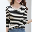 İlkbahar Ve Sonbahar Kadın Bluz Yuvarlak Yaka Moda Şerit İnce Uzun Kollu Üst Siyah