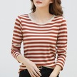 İlkbahar Ve Sonbahar Kadın Bluz Yuvarlak Yaka Moda Şerit İnce Uzun Kollu Üst Tuğla Kırmızısı Kiremit