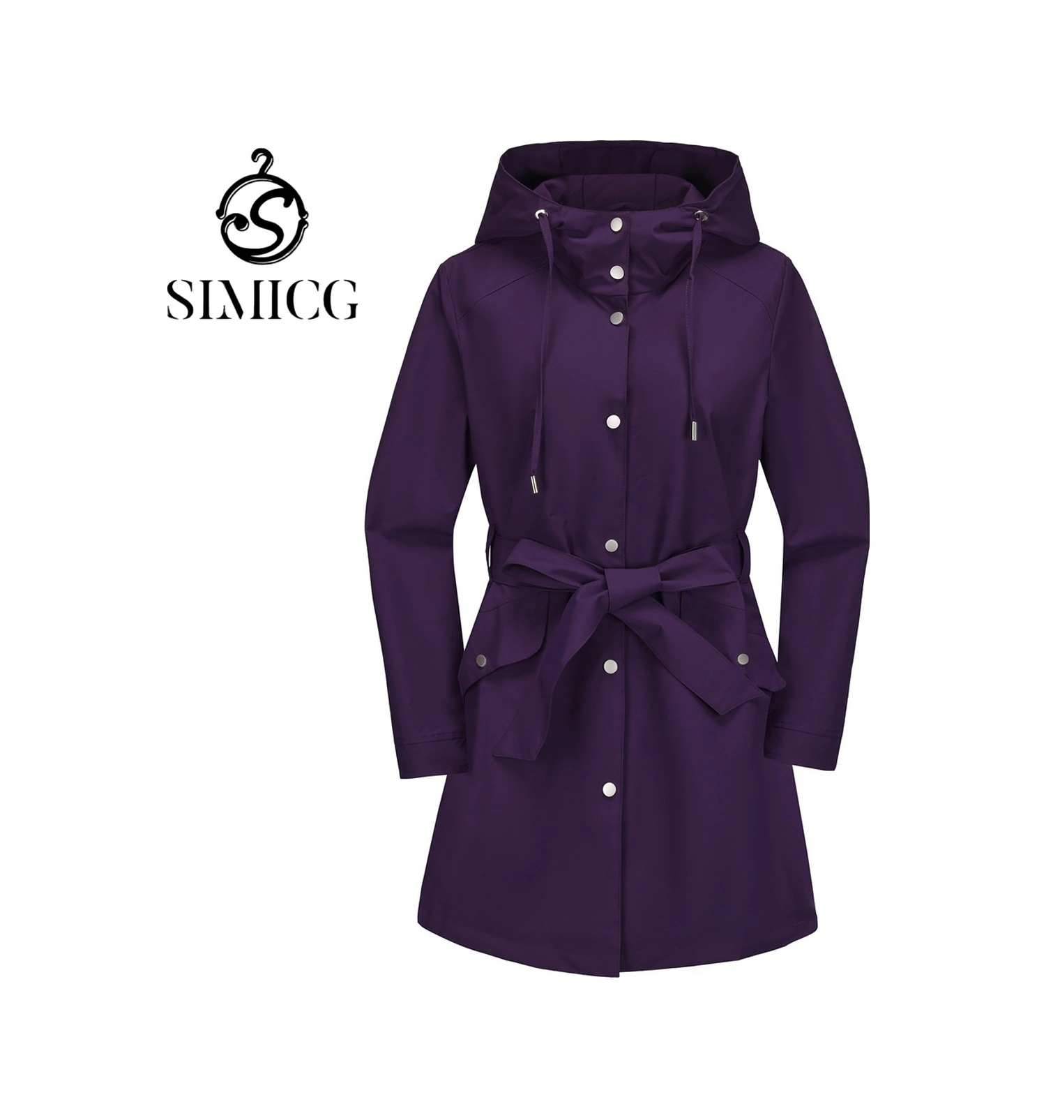 İlkbahar Ve Sonbahar Kapüşonlu Rahat Bol Rüzgarlık Ceket Mor