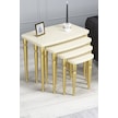 Imaj Mdf Ve Lake Boya, Krem 4lü Zigon Sehpa Takımı, Doğal Vernikli Gürgen Ayaklar Sehpalar Krem Ayaklar Gold