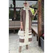 İmge Çizgili Triko Hırka Sütlü Kahve Çok Renkli