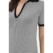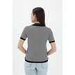 İnce Çizgili Polo Yaka Triko Kazak - Siyah - Kadın