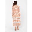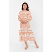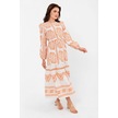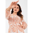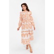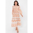 İnce Yaprak Dalı Desenli Yazlık Baharlık Keten Elbise 2102 Turuncu