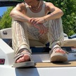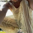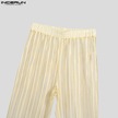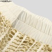 Incerun Artı Boyutu Erkek File Maxi Pantolon See Through Yaz Örgü Tatil Rahat Gevşek Katı Uzun Pantolon Bej