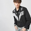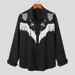 İncerun Bahar Erkek Püskül Baskılı Uzun Kollu Gömlek Salaş Siyah