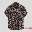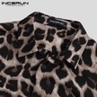 Incerun Casual Leopar Baskılı Erkek Gömlek Yaka Yaz Kısa Kollu Hawaii Gömlek Moda Baskı Üstleri Haki