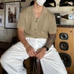 İncerun Erkek Günlük Giyim Düz Renk Örme Kısa Kollu Gömlek Yeşil