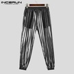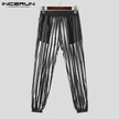 Incerun Erkek Yazlık Fileli Şeffaf Pantolon Yazlık Çizgili Uzun Pantolon Siyah
