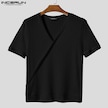 Incerun Erkek Yazlık V Yaka Kısa Kollu Patchwork T-shirt - Moda Streetwear Black