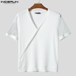 Incerun Erkek Yazlık V Yaka Kısa Kollu Patchwork T-shirt - Moda Streetwear Whıte