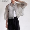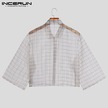İncerun Yaz Erkek See Through Bol Kısa Kollu Ekose Gömlek Beyaz