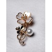 İnci Detaylı Çiçek Figürlü Altın Renk Broş Zarif Kadın Aksesuarı Gold