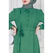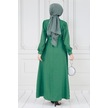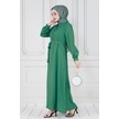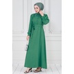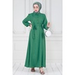İnci Detaylı Kuşaklı Tesettür Elbise-yeşil-3587-kiremit Kiremit