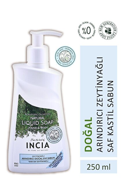 INCIA %100 Doğal Sıvı Kastil Sabunu Arındırıcı Zeytinyağlı 10 Bitkisel Değerli Yağ Vegan 250 ML