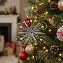 İncili 6 Yapraklı Gümüş Yılbaşı Ağaç Süsü Dekoratif Parlak Süsleme