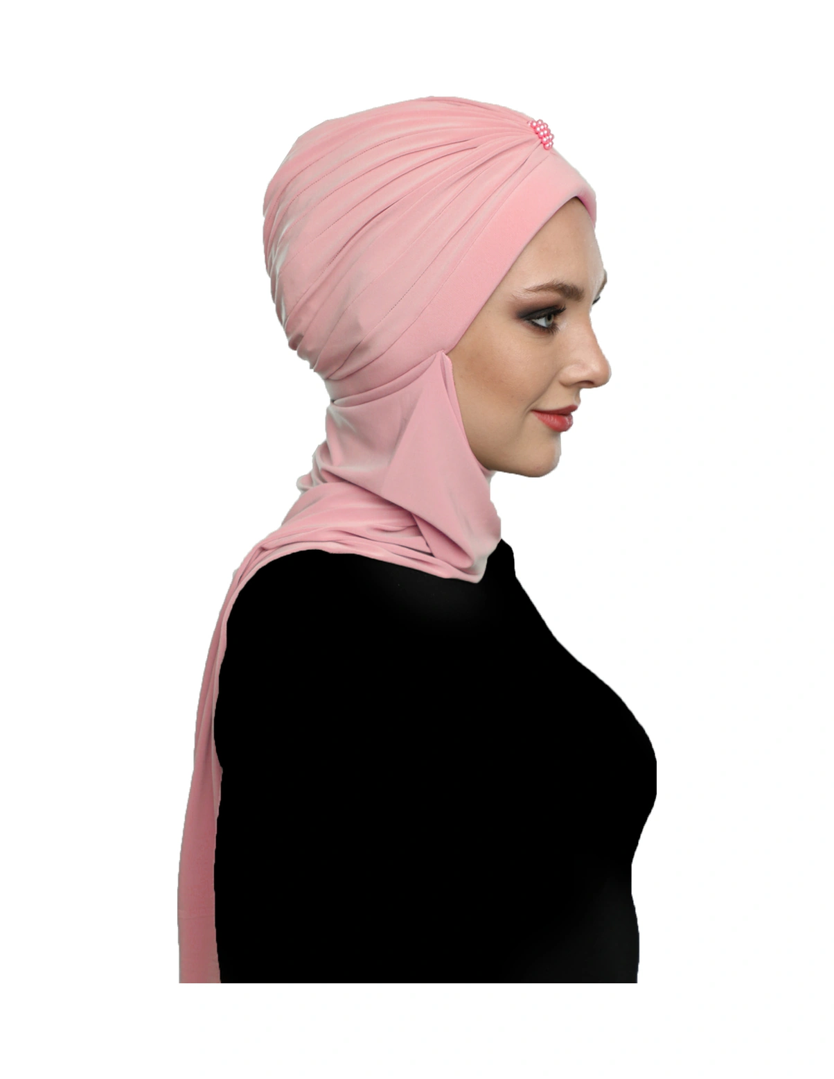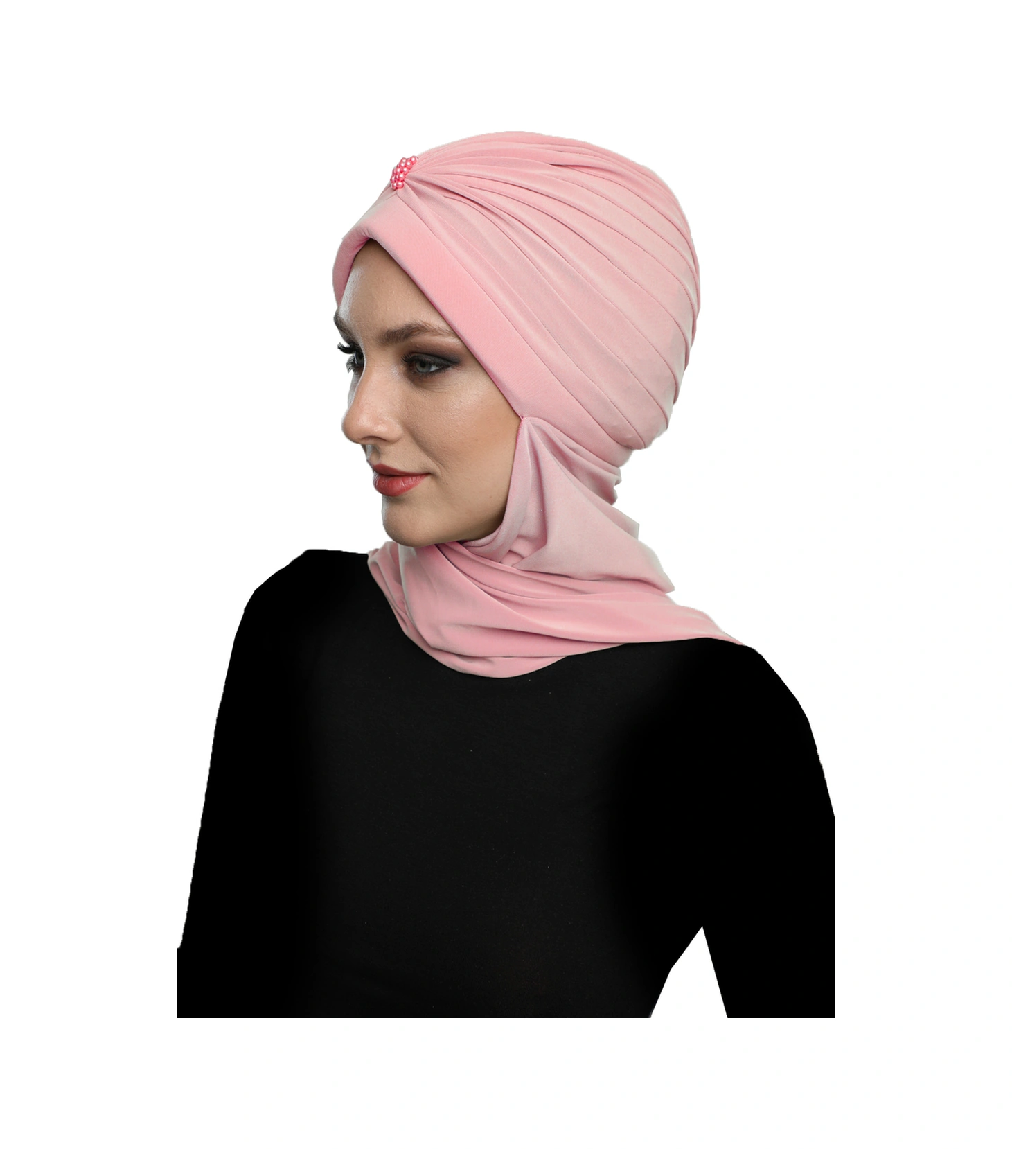 Incili Atkılı El Işi Inci Işlemeli Pudra Hazır Türban Tesettür Bone Pudra