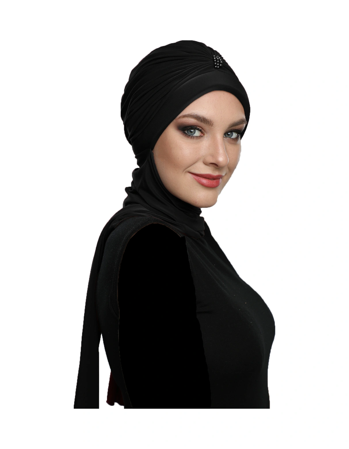 Incili Atkılı El Işi Inci Işlemeli Siyah Hazır Türban Tesettür Bone Siyah