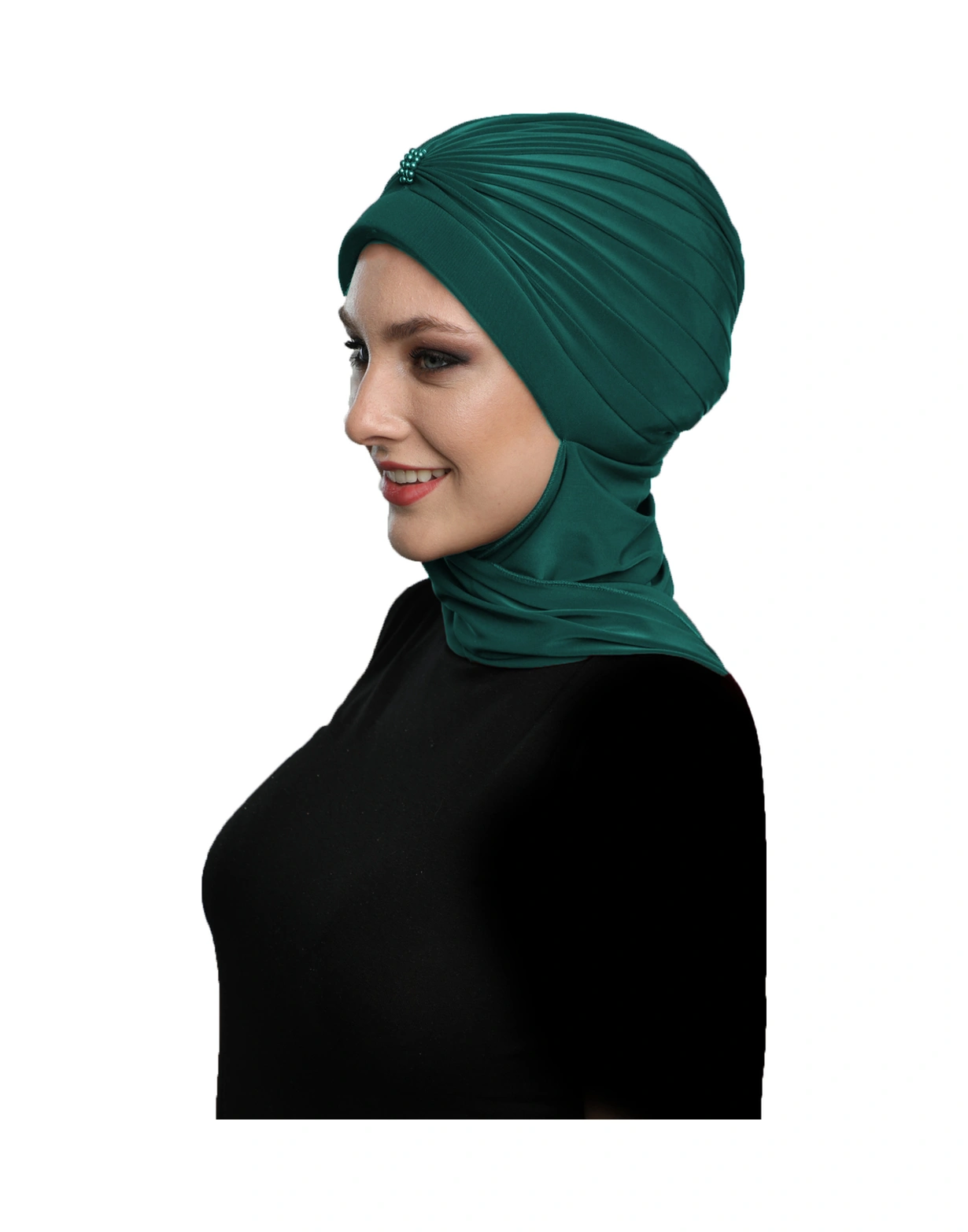 Incili Atkılı El Işi Inci Işlemeli Yeşil Hazır Türban Tesettür Bone Hürrem