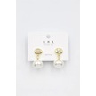 İncili Taşlı Küpe - Altın Çok Renkli