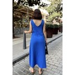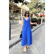 İndigo Askılı İthal Müslin Kumaş, Önü Ve Arkası V Yaka, Önden Yırtmaçlı, Maksi/uzun Salaş Elbise Indigo
