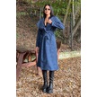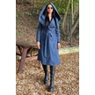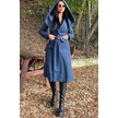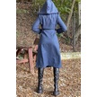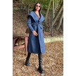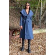 İndigo Kruvaze Yaka, Kapüşonlu, Çift Cepli, Beli Kemerli, Uzun Kaşe Kaban Astarsız İndigo
