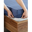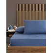 İndigo Mavi Pamuklu Çizgili Saten Lastikli Çarşaf Takımı Tek Kişilik + 1 Yastık Kılıfı Lacivert