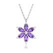 İndigo Takı Ametist Taşlı Lotus Çiçeği Beyaz Gümüş Kolye