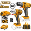 Ingco ING-CKLI2017 Li-ion Akülü 2'li Kombo Set - Matkap + Somun Sıkma 20V 2.0 AH