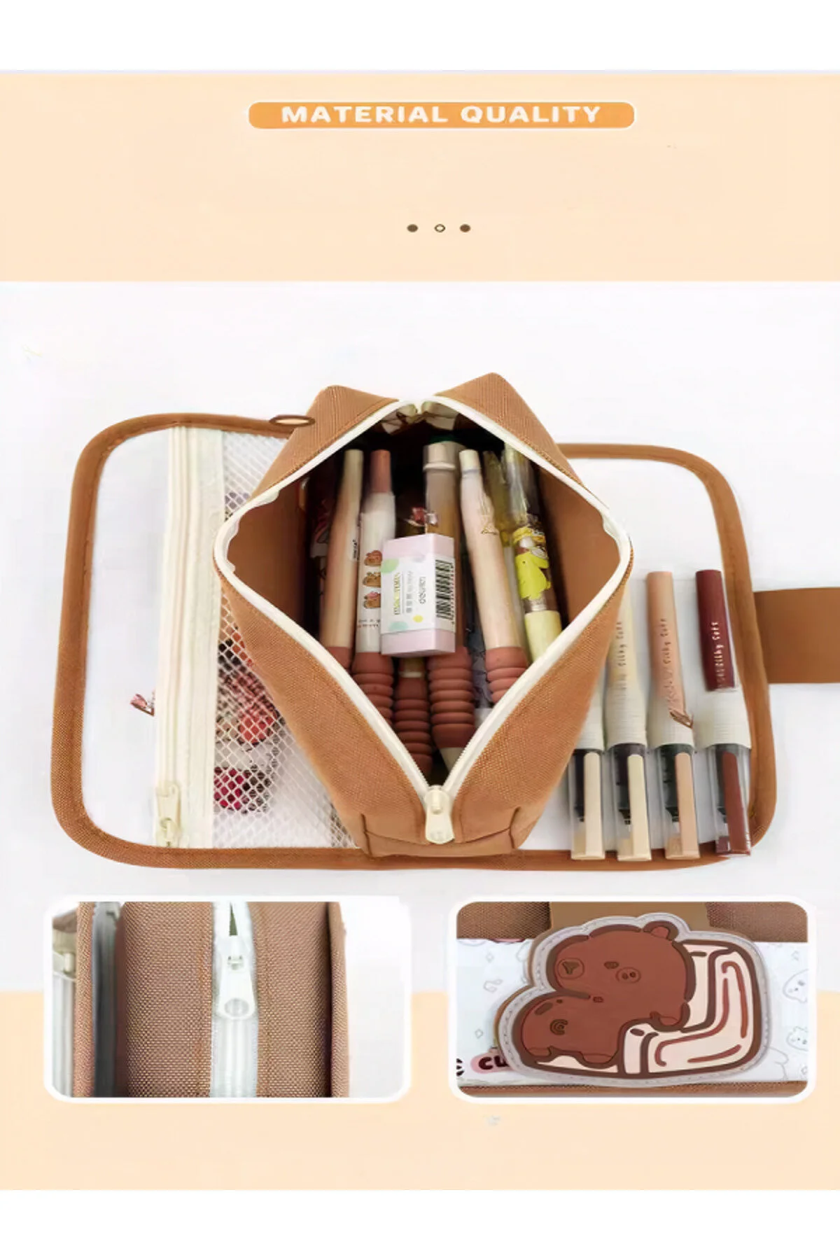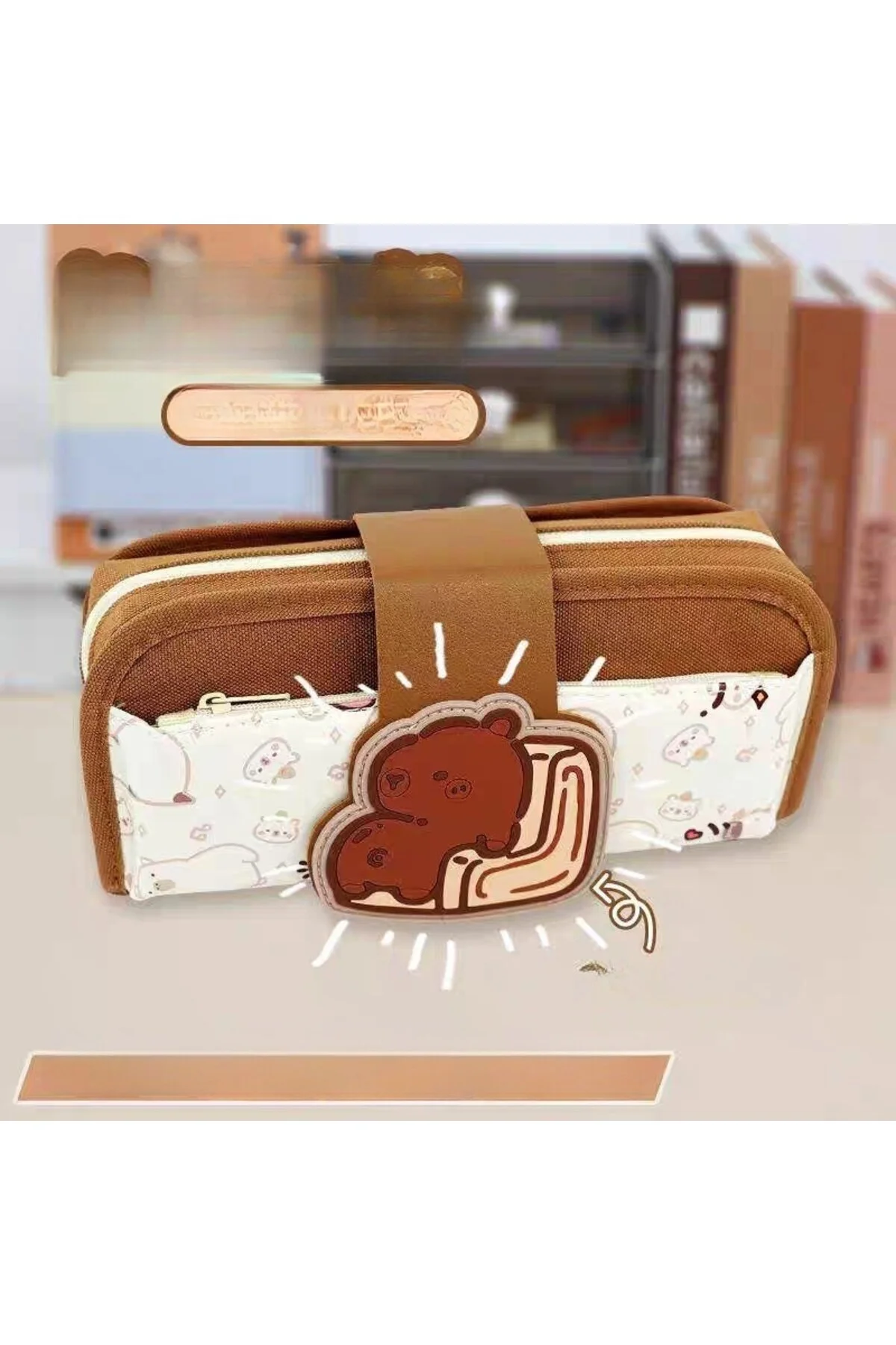 Ins Tarzı Basic, Geniş Kapasiteli, Leke Tutmaz Capybara Kalem Kutusu Koyu Kahverengi