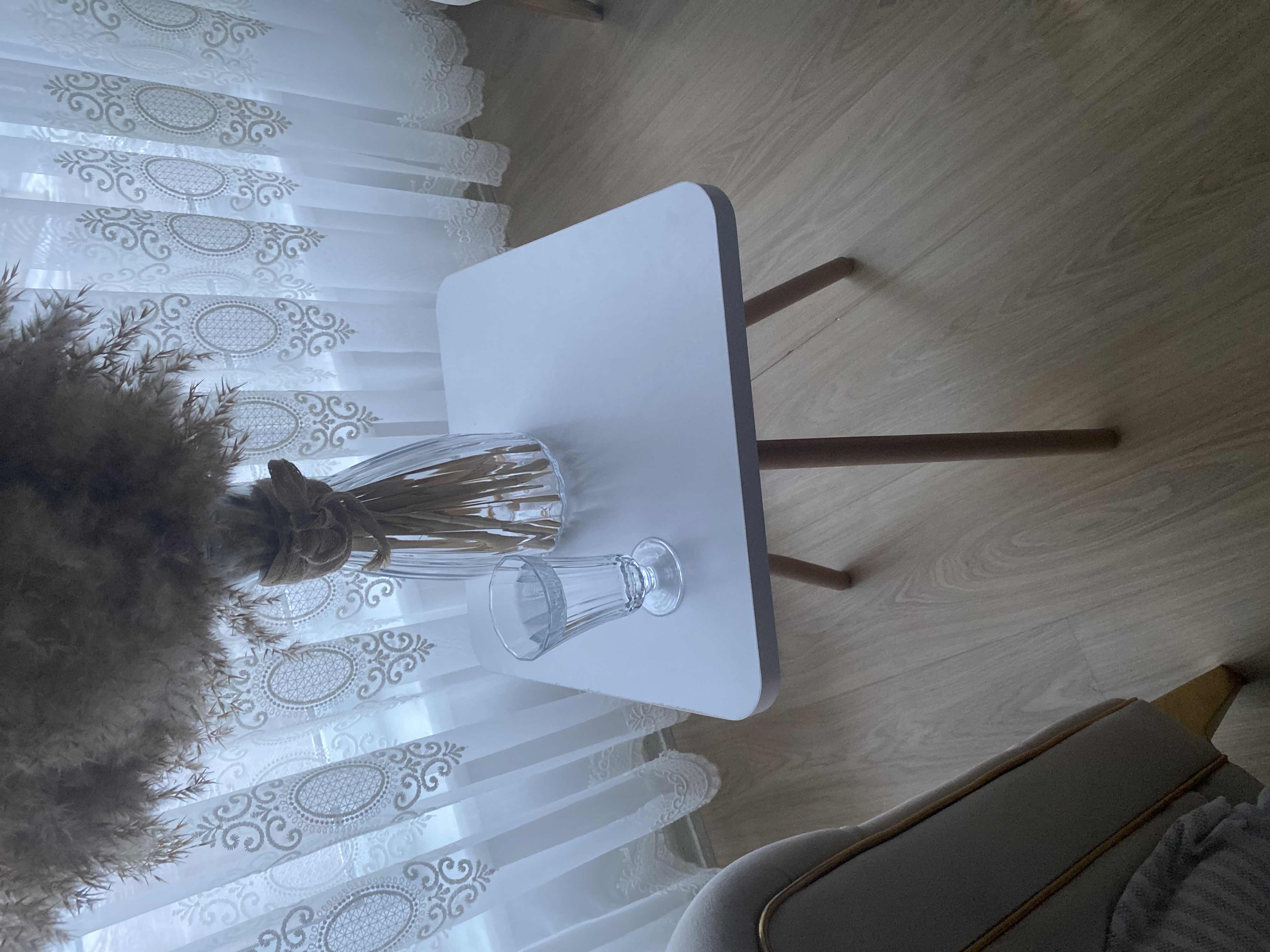 İntergo Kare Tasarımlı Ahşap Ayaklı Tekli Zigon Sehpa Beyaz