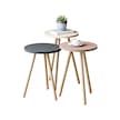 İntergo Renkli Üçlü Zigon Sehpa Ahşap Ayaklı Yuvarlak Pastel Tasarım Cappuccino-Gri-Krem