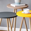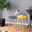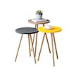 İntergo Renkli Üçlü Zigon Sehpa Ahşap Ayaklı Yuvarlak Pastel Tasarım Cappuccino-Gri-Sarı