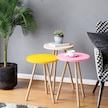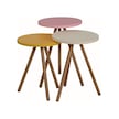İntergo Renkli Üçlü Zigon Sehpa Ahşap Ayaklı Yuvarlak Pastel Tasarım Sarı-Krem-Pembe