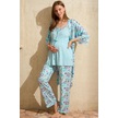 İp Askılı V Yaka Kadın Çiçek Desenli Yazlık Dantel Detaylı Hamile Pijama Takımı Sabahlık