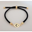 İpek Örgülüli 14 Ayar Altın Plakalı Oval Motifli Türkiye Sembollü Hediye Bileklik-320sembol-siyah Altın