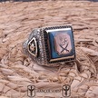 İpek Silver 925 Ayar Gümüş Sıkma Kehribar Taşlı Çift Başlı Zülfikar Desenli Erkek Yüzük Apy101