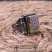 İpek Silver 925 Ayar Gümüş Sıkma Kehribar Taşlı Osmanlı Desenli Erkek Yüzük Apy144