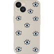 Iphone 13 Uyumlu Nazar Gözler Desenli Kamera Lens Korumalı Darbe Emici Silikonlu Lansman Kılıf Krem