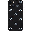 Iphone 13 Uyumlu Nazar Gözler Desenli Kamera Lens Korumalı Darbe Emici Silikonlu Lansman Kılıf Siyah