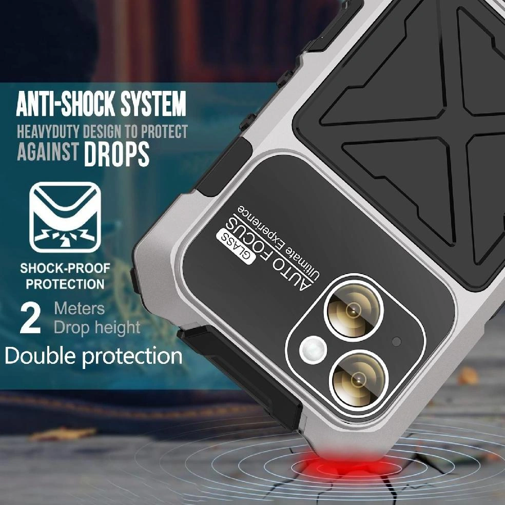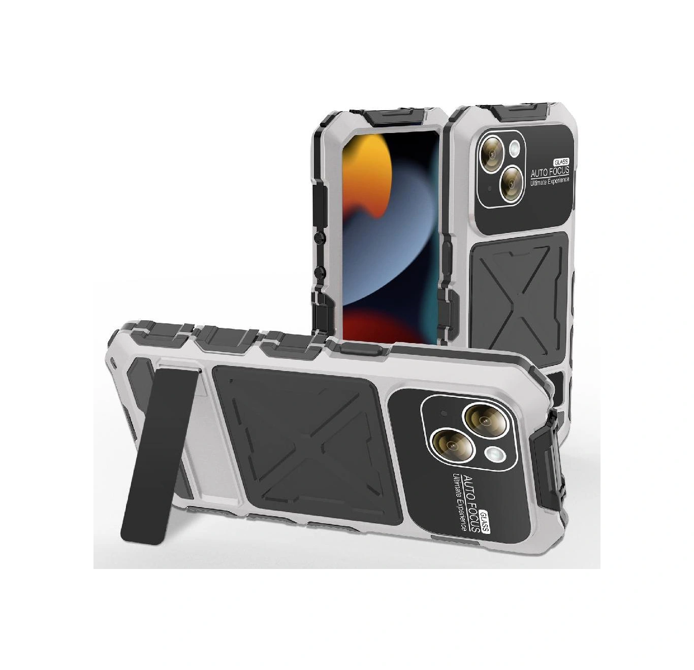 İphone 14 Plus İçin Metal Standlı Telefon Kılıfı Düşmeye Dayanıklı Emici Silikon Ayaklık Kılıf Şok Emici