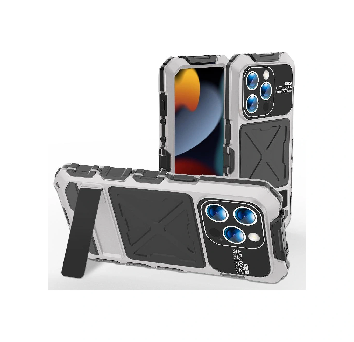 İphone 14 Pro Max İçin Metal Standlı Telefon Kılıfı Düşmeye Dayanıklı Şok Emici Ayaklık Kılıf Emici Silikon