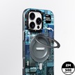 İphone 14 Pro Max Uyumlu Kılıf Magsafe Şarj Özellikli Youngkit 360 Standlı Technology Serisi Kapak Mavi
