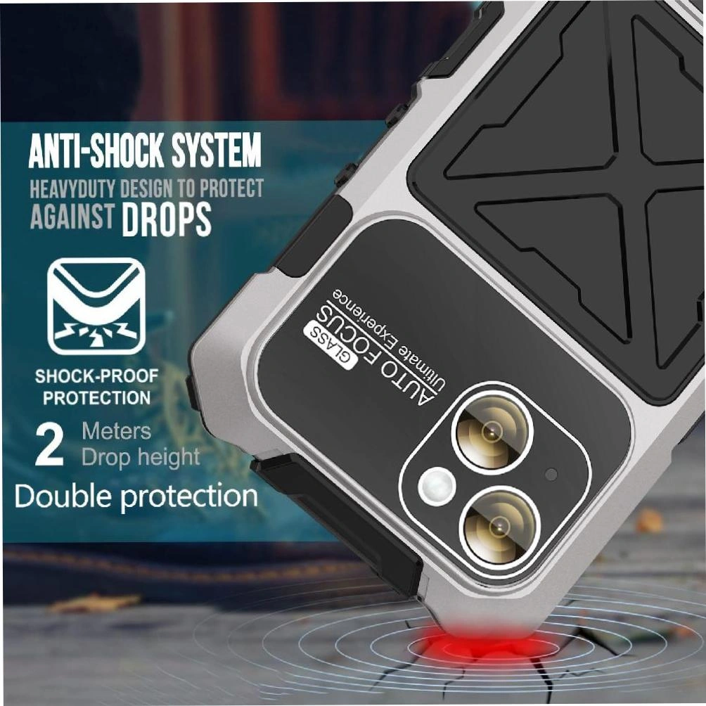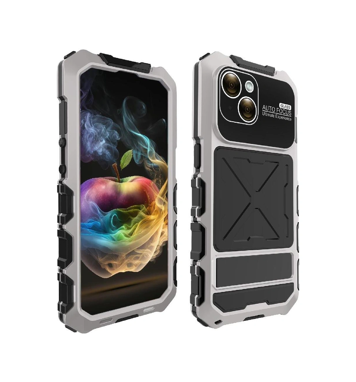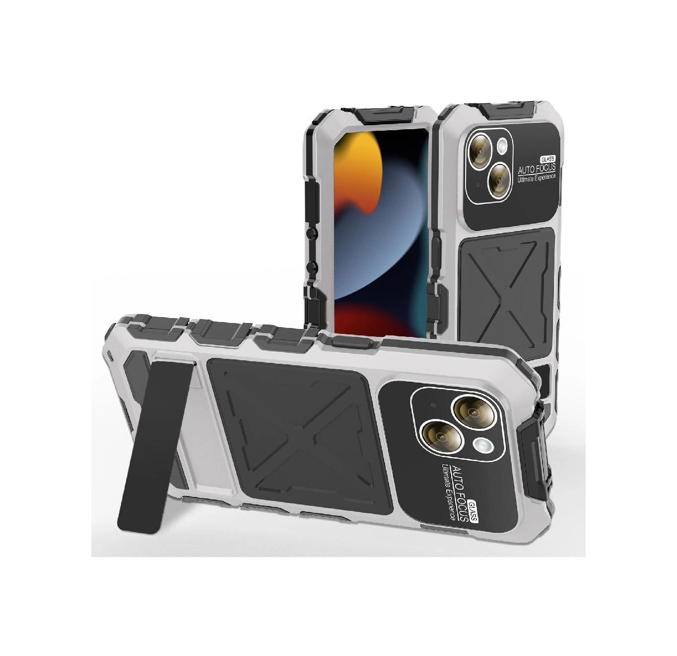 İphone 15 Plus İçin Metal Standlı Telefon Kılıfı Düşmeye Dayanıklı Kasa Şok Emici Silikonlu Destekleyici Koruma