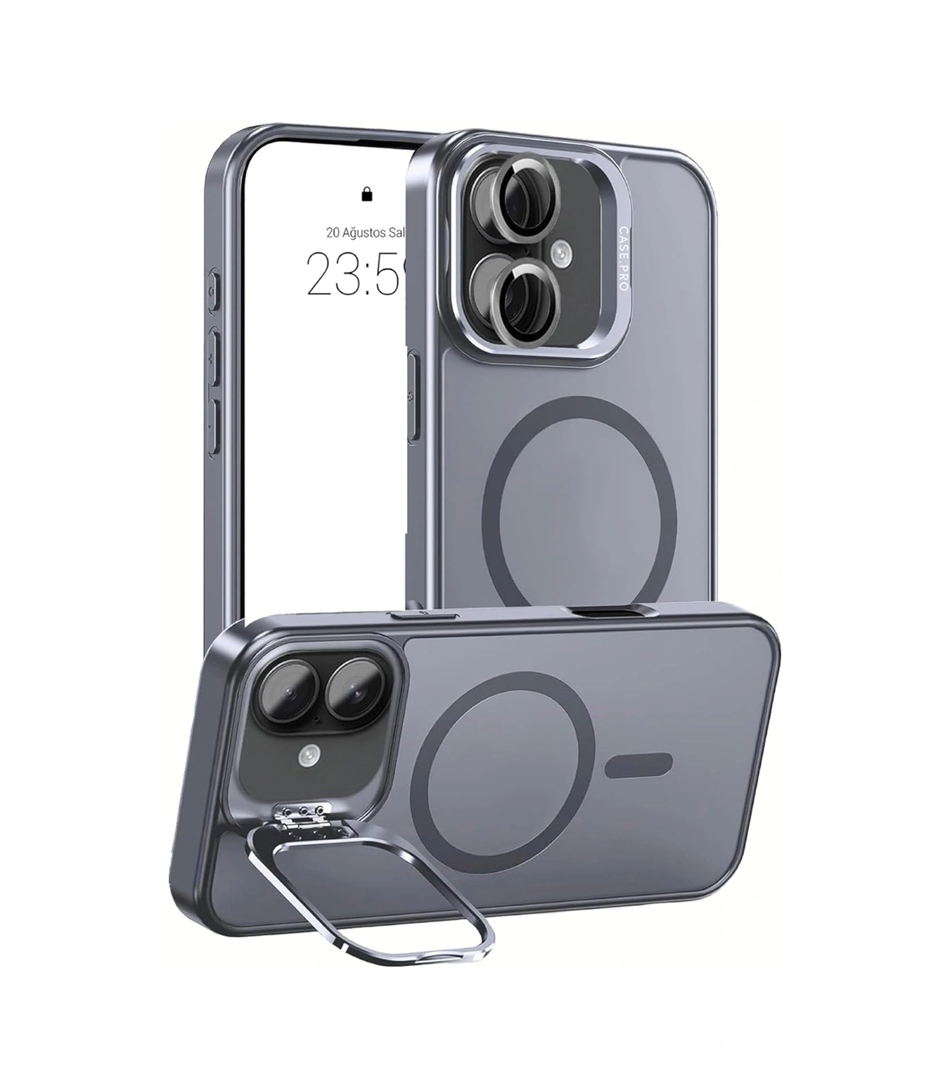 İphone 17 Kılıf Armor Seri Magsafe Uyumlu Stand Özellikli Kamera Lensli Kapak Gri