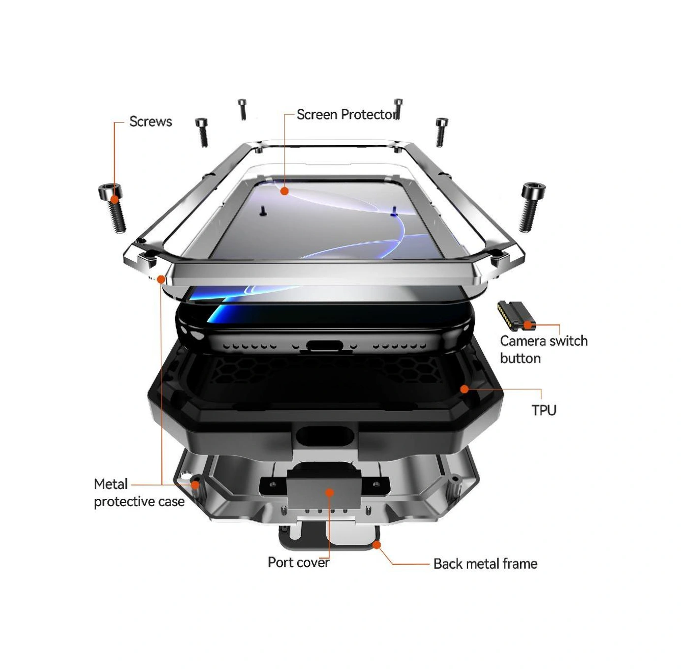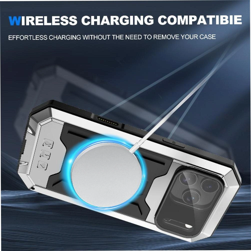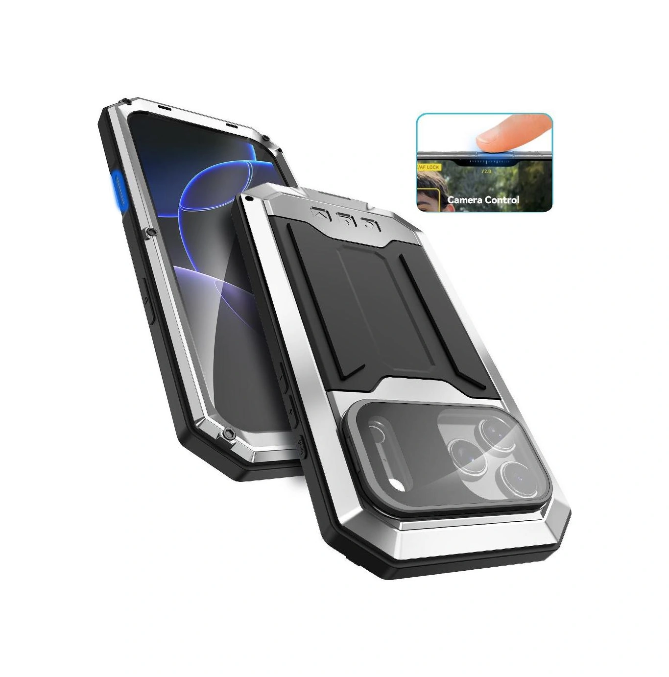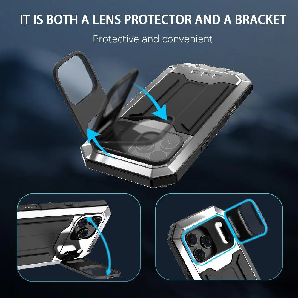 İphone 17 Pro Max İçin Metal Standlı Telefon Kılıfı Dahili Kamera Destek Ayağı Ağır Hizmet Dayanıklı Şok Geçirmez Cam Ekran Koruyucu