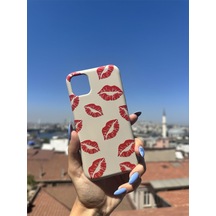 İphone 17 Uyumlu Kırmızı Dudak Tasarımlı Telefon Kılıfı - Krem
