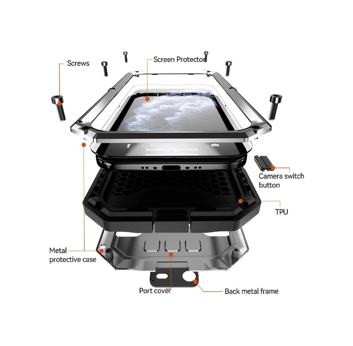 İphone İçin Metal Standlı Telefon Kılıfı Air Cam Ekran Koruyucu Ağır Hizmet Şok Geçirmez Dahili Kamera Kickstand