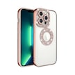 iPhone Uyumlu 13 Pro Kılıf Kamera Korumalı Taş Süslemeli Arkası Şeffaf Redclick Asya Kapak - Rose Gold