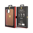 İphone Uyumlu 14 Kılıf Ferrari Lisanslı Deri Kenarları Damgalı Dizayn Kapak Kahverengi
